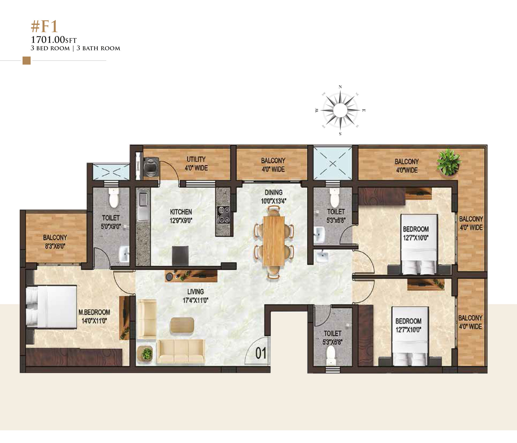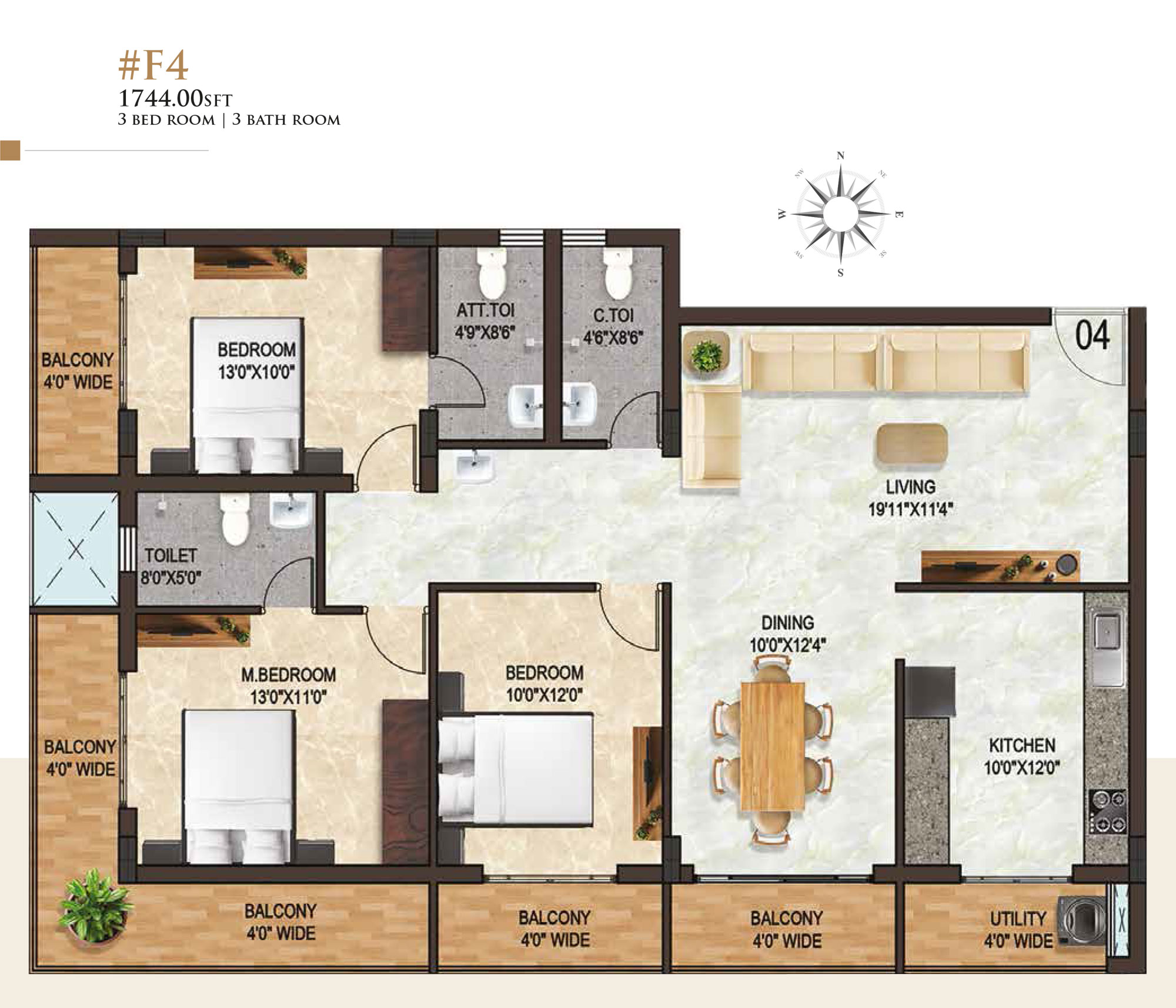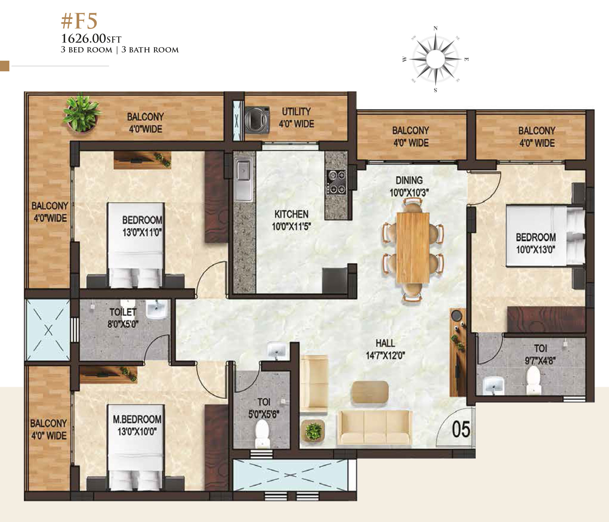 3BHK 1626 – 1744Sqft On Request*